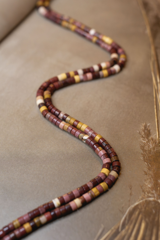 Mookaiet is een Australische jaspis met diepe rood-, geel- en bruintinten. Spiritueel staat mookaiet voor vitaliteit en flexibiliteit. Herkomst: Australië.