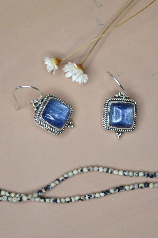 Indra Laut Kyaniet Oorbellen - Sterling Zilver