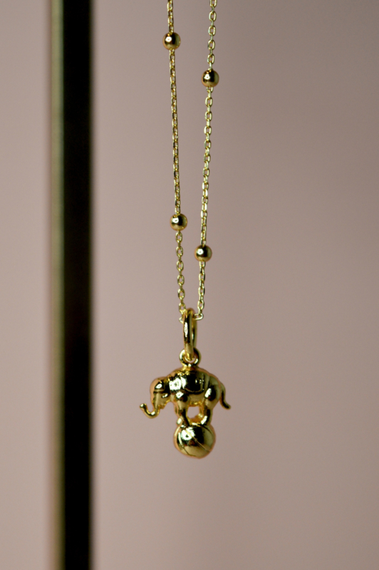 Artikelnummer: DH-2234-NLFijne gold plated balletjes ketting met originele gold plated circusolifant hanger.
