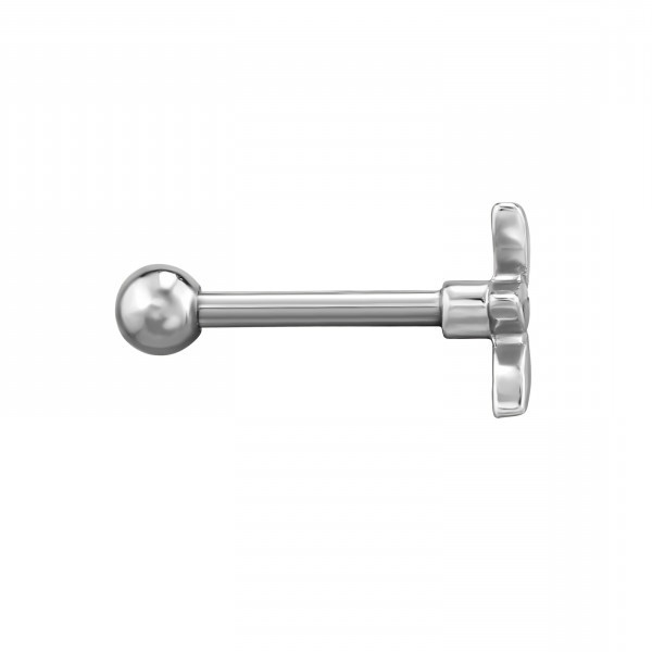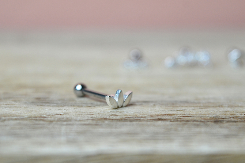 Sierlijke Leaf Silver Tragus, Helix, Upper Ear Piercing op 1.2mm (16G) 316 Surgical Steel Threaded Barbell is gemaakt van 925 Sterling Zilver + 316 Chirurgisch Staal en afgewerkt met een E-Coating.