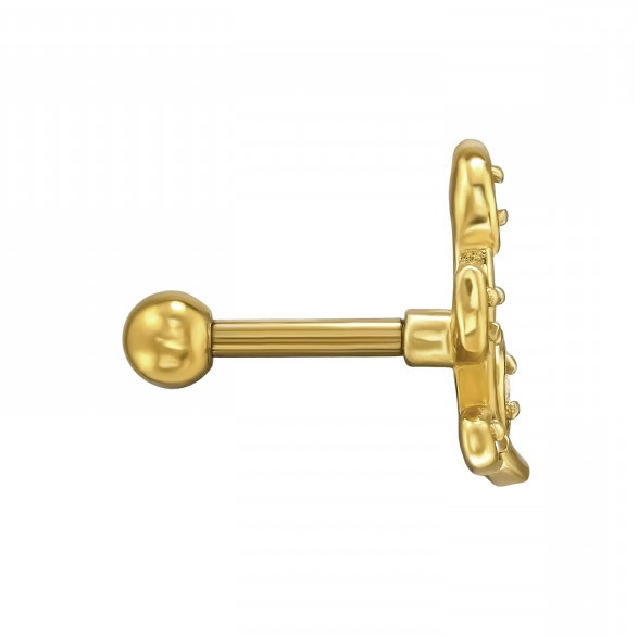 Verguld Sterling Zilver 'Bladtak' Tragus, Helix, Bovenoor Piercing met Cubic Zirconia op 1.2x6mm (16G) 316 Chirurgisch Staal Vergulde Schroefdraad Barbell met 3mm Plain Ball