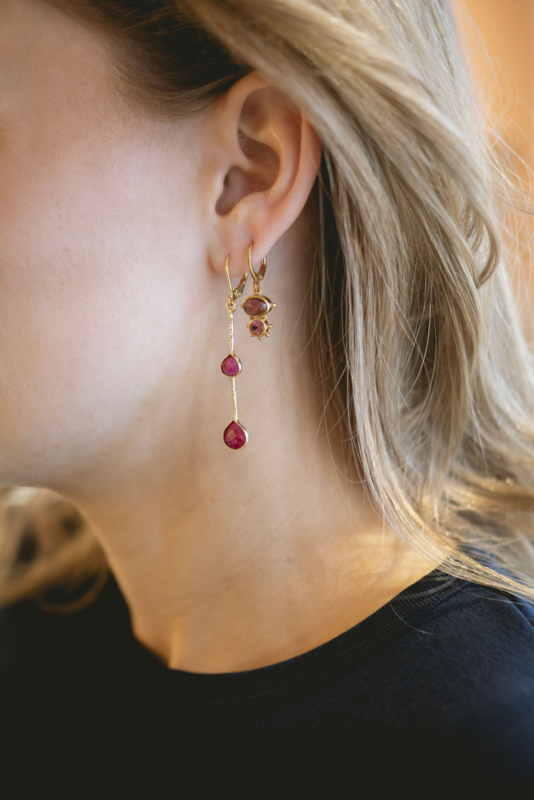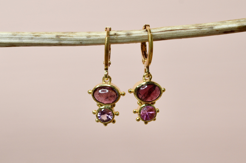 Steen: Deze oorbellen zijn afgewerkt met een roze toermalijn en amethist, zorgvuldig geselecteerd voor hun zachte kleurenspel en verfijnde uitstraling.