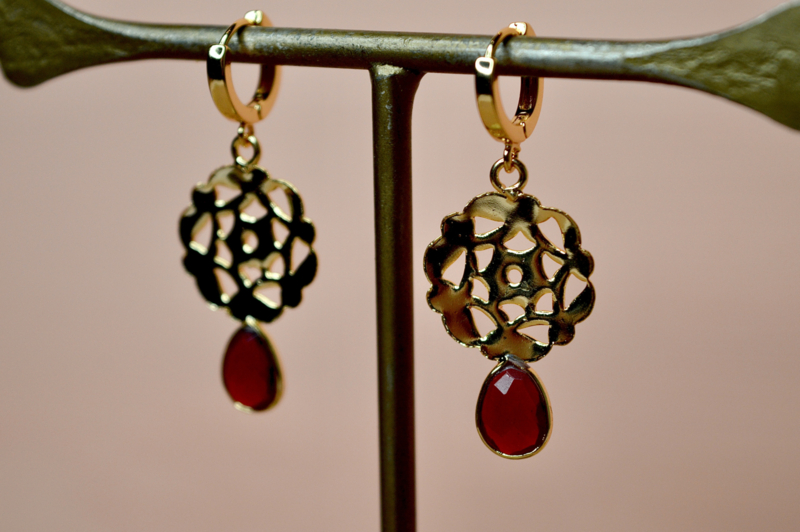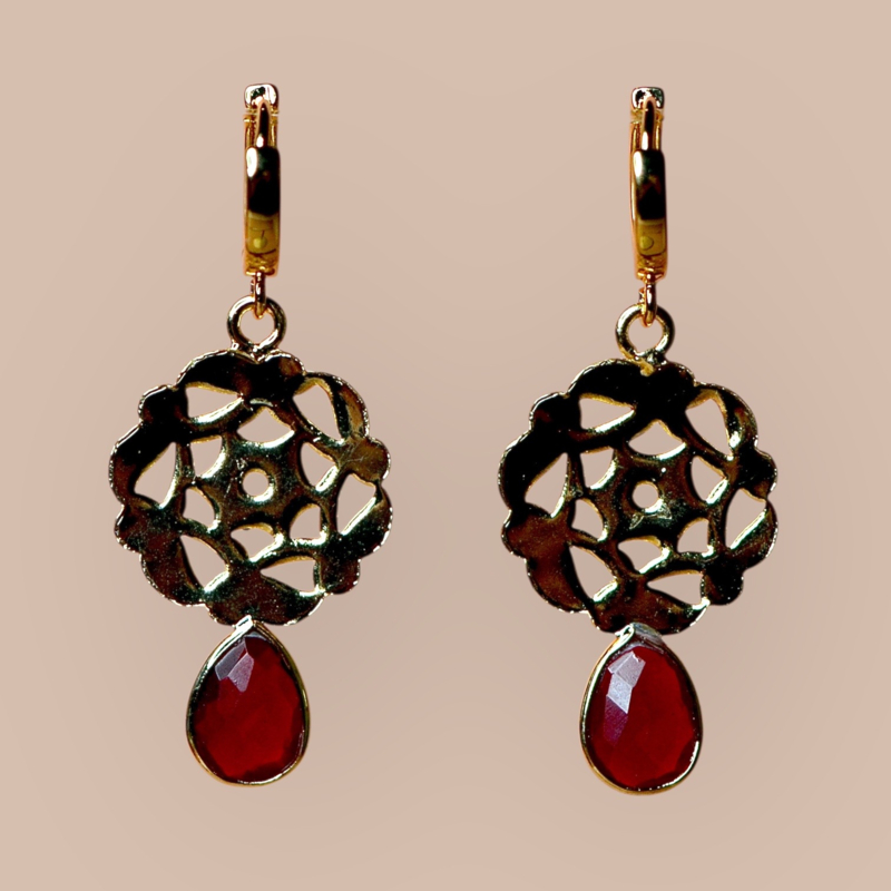 Artikelnummer: MJ-1158Deze boho goldplated oorbellen met granaat stralen pure warmte en elegantie uit. De diepe, robijnrode granaat vangt het licht prachtig en geeft elke look een luxe, vrouwelijke touch. Dankzij de verfijnde hoop van 12 mm en de totale lengte van 31 mm ogen ze licht en sierlijk, perfect voor zowel dagelijkse outfits als speciale momenten.