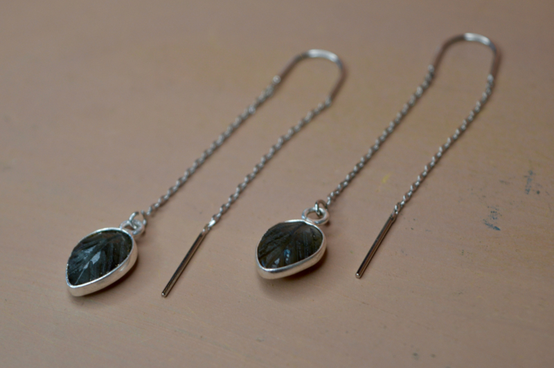 Mystic Leaf Labradoriet Earchains - Silver Plated