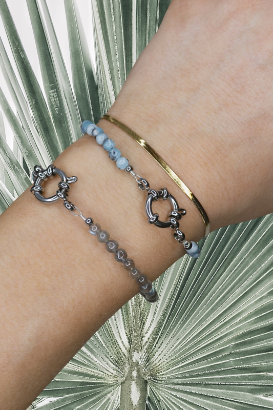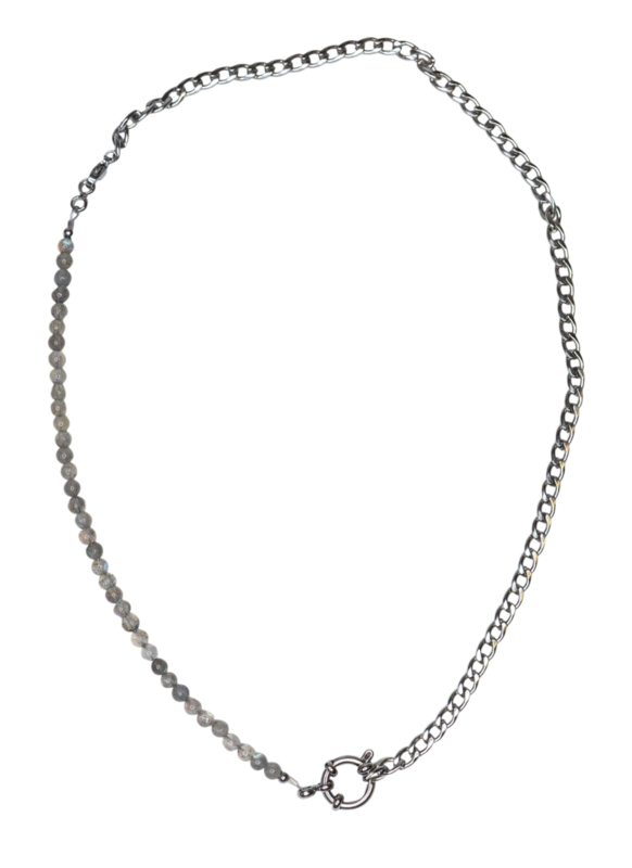 Larimar Duo Design Ketting - Stainless Steel ZilverDeze leuke Duo Design-ketting is multifunctioneel: haal de schakel eraf en draag hem als een prachtige armband met edelsteen kraaltjes.∙ Materiaal: Roestvrijstaal