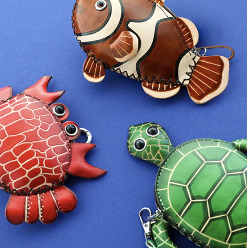Een speels, handgemaakt Portemonnee van leer schildpad