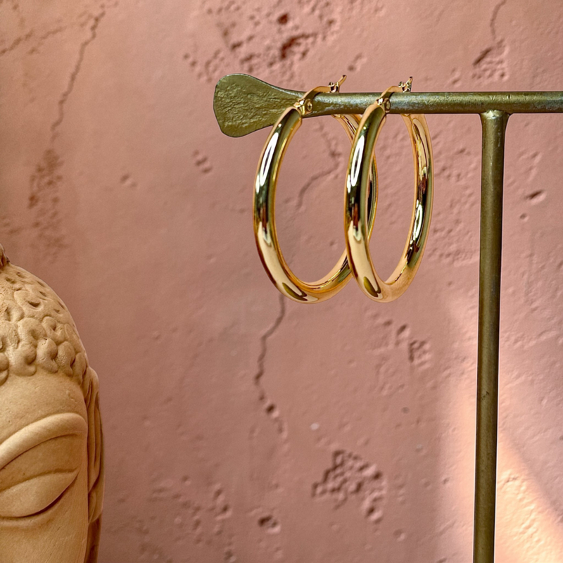 Artikelnummer: P-YW0001Huggie Hoops in goudkleurig stainless steel.. Minimalistisch met een boho touch — perfect om solo te dragen of te combineren in een ear stack. Tijdloos, lichtgewicht en ontworpen voor every-day wear.