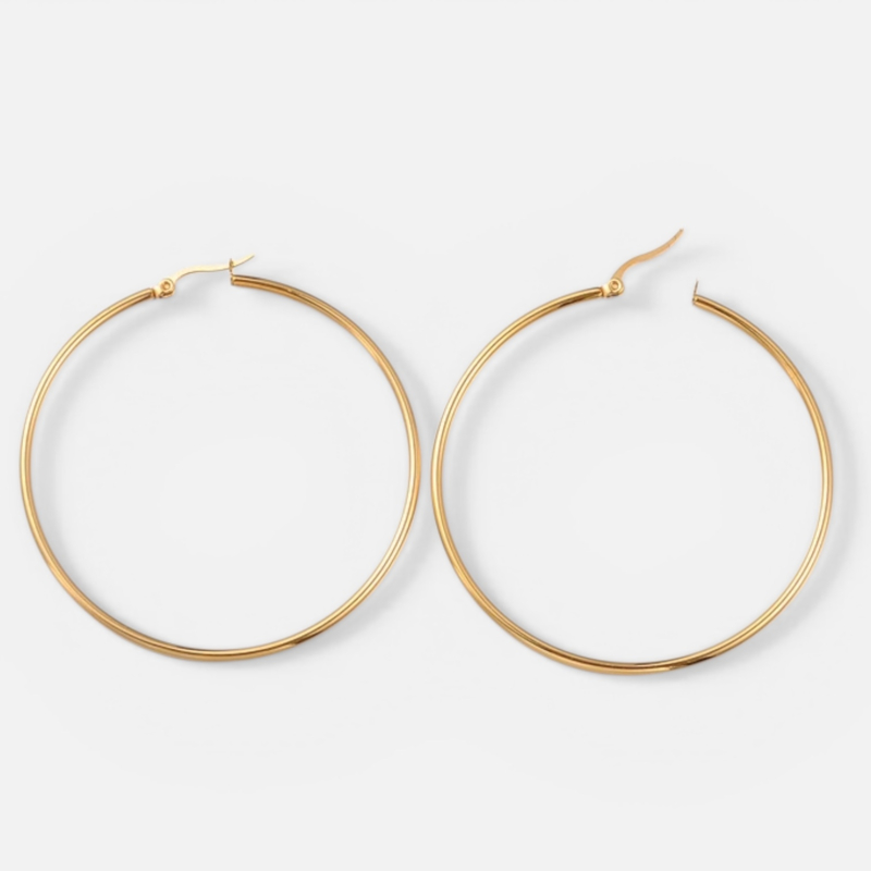 Large Hoops - Stainless Steel GoudLarge Huggie Hoops in goudkleurig stainless steel.. Minimalistisch met een boho touch — perfect om solo te dragen of te combineren in een ear stack. Tijdloos, lichtgewicht en ontworpen voor every-day wear.