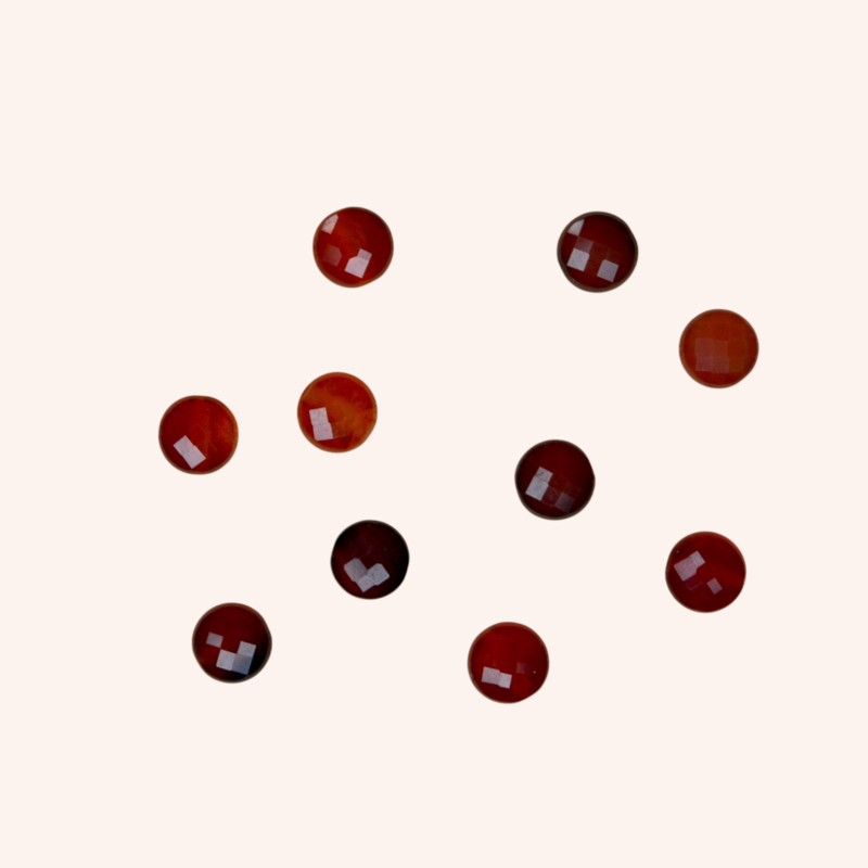 Carneool kralen hebben warme tinten die variëren van zacht oranje tot diep roodbruin. Deze edelsteen geeft sieraden een levendige en krachtige uitstraling en is perfect voor het creëren van ontwerpen met karakter.