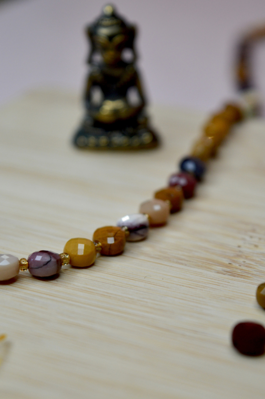 Mookaiet wordt vaak geassocieerd met balans en vitaliteit en past perfect binnen een bohemian en natuurlijke stijl. De warme tinten combineren mooi met goud en andere edelstenen.