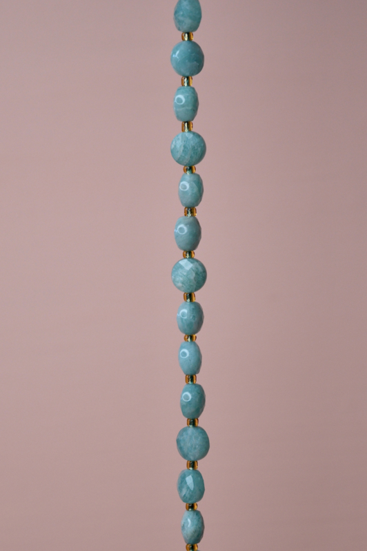Amazoniet wordt vaak geassocieerd met balans en harmonie en past perfect binnen een bohemian en natuurlijke stijl. De zachte kleur combineert mooi met goud, zilver en andere edelstenen.