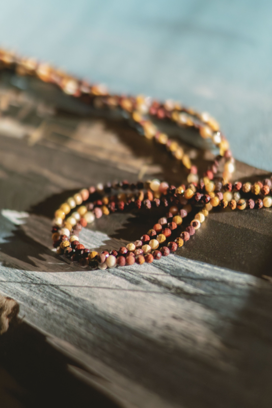 Mookaiet is een Australische jaspis met diepe rood-, geel- en bruintinten. Deze steen geeft sieraden een warme en natuurlijke uitstraling. Spiritueel staat mookaiet voor vitaliteit en flexibiliteit. Herkomst: Australië.