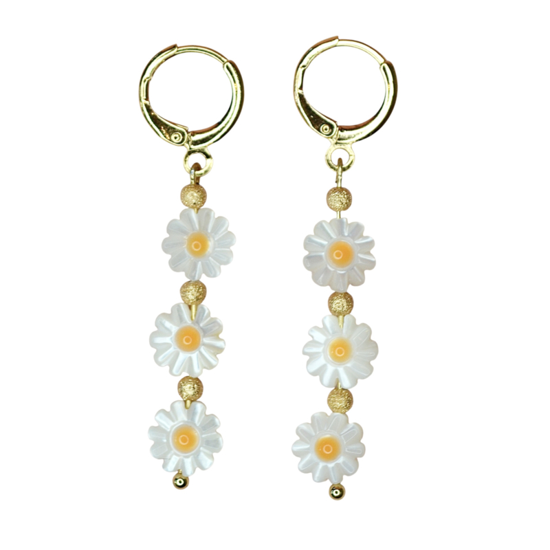 Triple Daisy Schelp oorbellen - Gold Plated