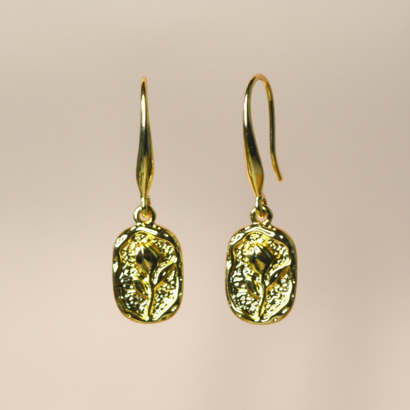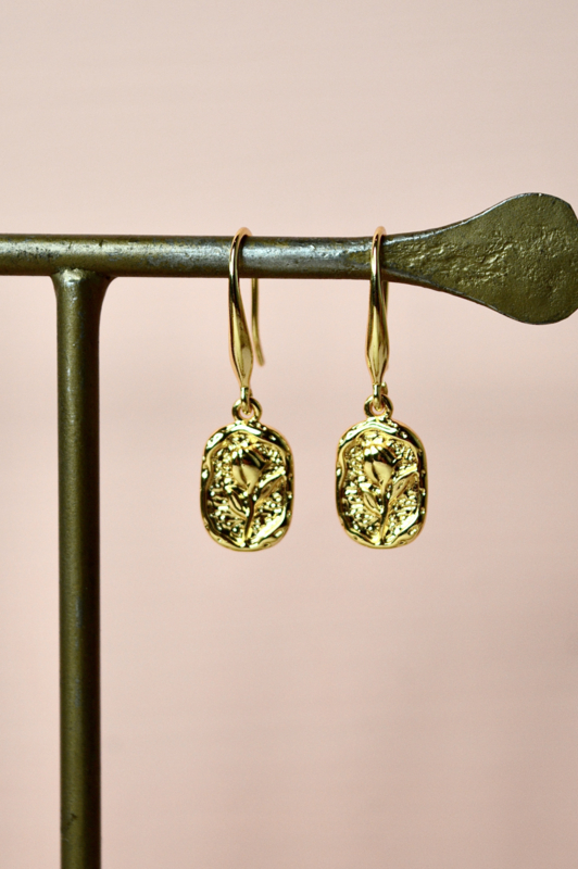 Artikelnummer: DH-1718Deze Vintage Tulip Earrings brengen een vleugje zachte natuur in een verfijnde, gouden vorm. De kleine hanger met reliëf van een bloeiende tulp geeft deze oorbellen een subtiel vintage karakter, terwijl de warme gold plated glans zorgt voor een elegante, tijdloze uitstraling.