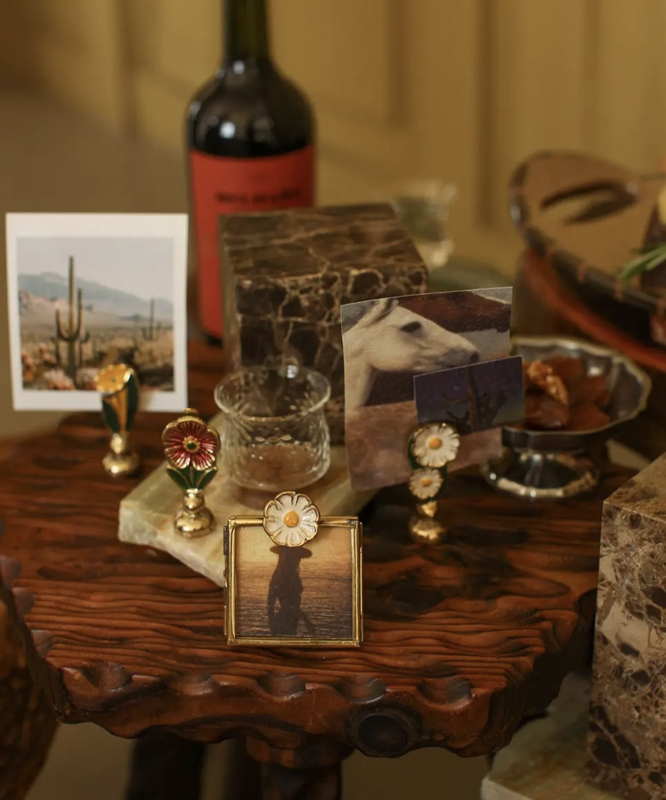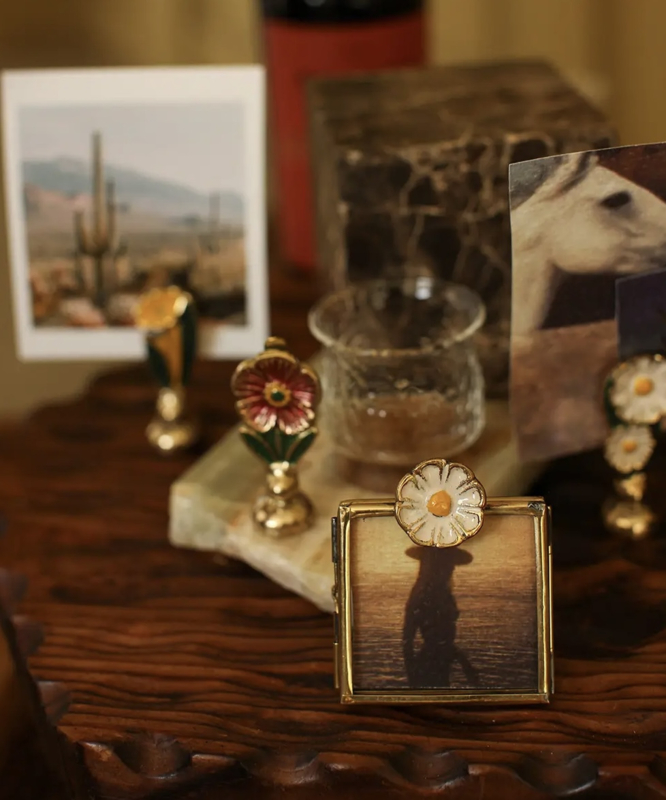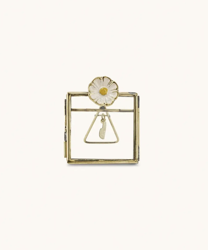 Voeg een vrolijke toets toe aan je interieur met de charmante Posy Daisy Mini Fotolijst. Deze handgemaakte mini lijst is gemaakt van gerecycled messing en helder glas, en wordt bekroond met een schattige madelief – een bloem die symbool staat voor eenvoud, liefde en vreugde.