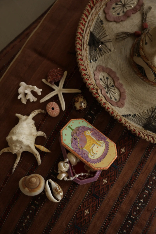 De Very Berry Tiger Doos Groot is een speelse opbergdoos, perfect voor het bewaren van je favoriete herinneringen. Handgemaakt door ambachtslieden van papier-maché en messing, met een vrolijke tijgerillustratie en kleurrijke patronen die elke ruimte opvrolijken. Met afmetingen van 18 x 10 x 3 cm biedt deze rechthoekige bewaardoos een creatieve oplossing voor het opbergen van alles van notities tot sieraden.