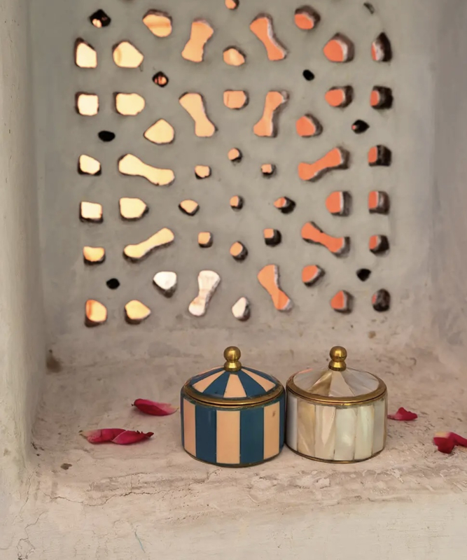 Dit doosje is handgemaakt in India. Vanwege het handgemaakte karakter, kan het zijn dat er kleine verschillen zitten in de uitstraling van iedere doosje. Dat maakt ieder item uniek!