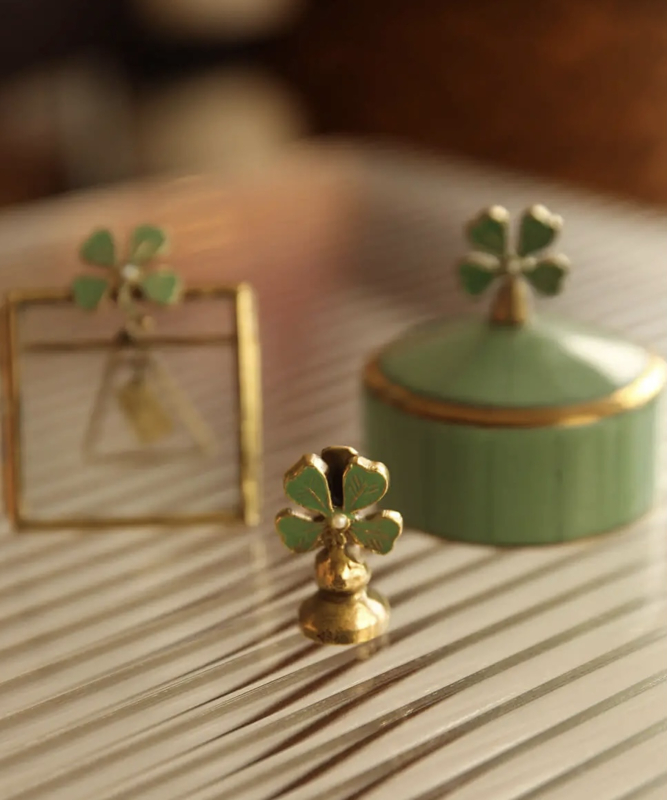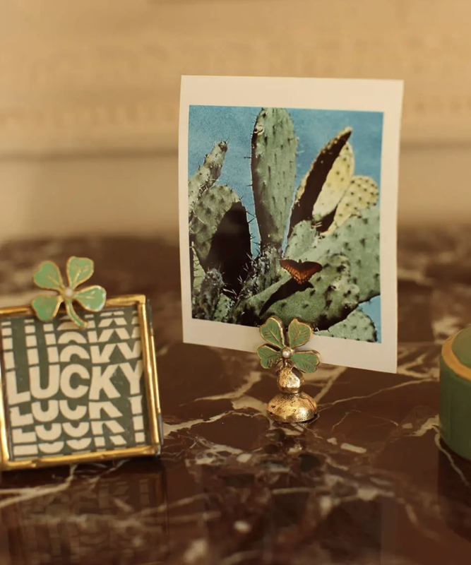 Breng een beetje magie en geluk in je huis met de Lucky Klaver Memohouder. Handgemaakt van gerecycled messing, deze aantrekkelijke accessoire kenmerkt zich door een vierbladig klaverontwerp, waarbij elk blad geloof, hoop, liefde en geluk symboliseert. Het gaat om meer dan alleen organiseren – het gaat om het toevoegen van positiviteit en charme aan je kamer of huis.