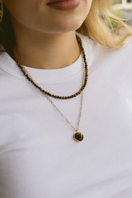 Tijgeroog Hart Ketting - Stainless Steel Goud