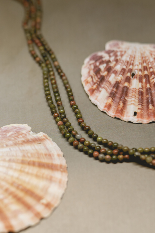 Unakiet is een mooie natuursteen met zachte groen- en rozetinten die perfect samenkomen. Door zijn rustige uitstraling is hij populair bij het maken van sieraden, zoals armbanden en kettingen. Hij geeft elk handgemaakt stuk een warme, natuurlijke en unieke uitstraling.