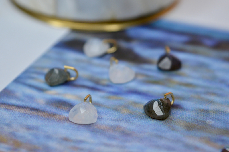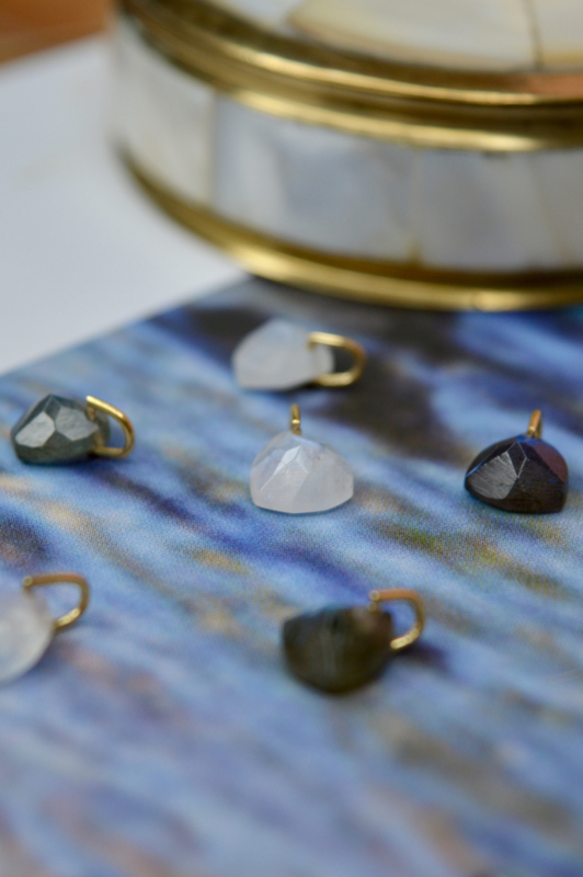 Facet geslepen edelsteen bedel aan verguld sterling zilver hangoogje om je eigen creatie mee af te maken.