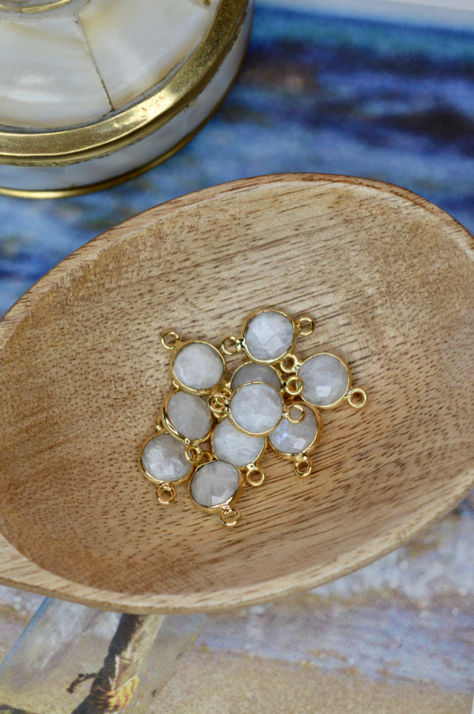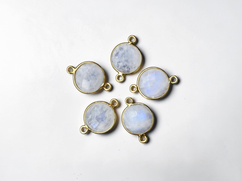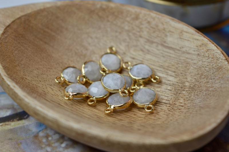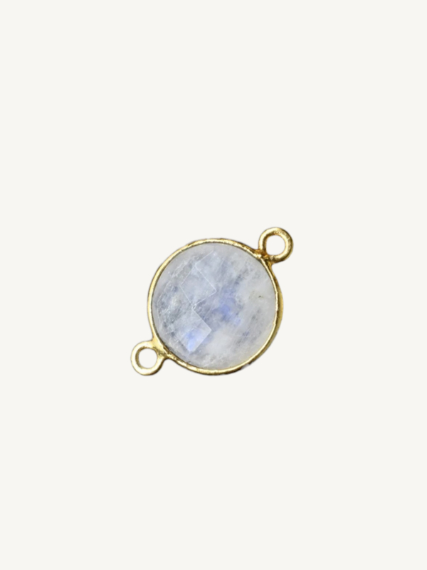 Facet geslepen ronde labradoriet connector bedel in gold plated brass om je eigen creatie mee af te maken.