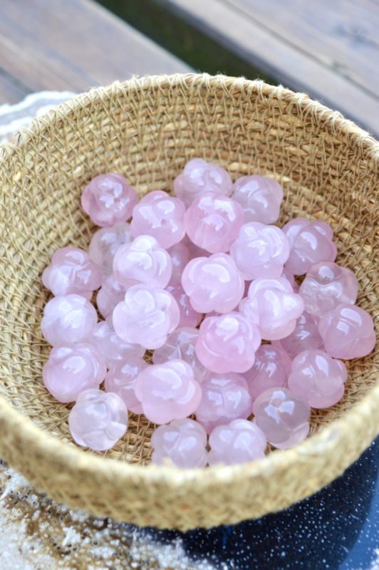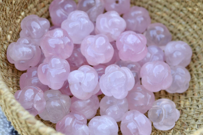 Grade AA Rozenkwarts handgesneden knoop kraal.