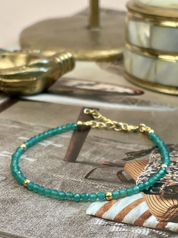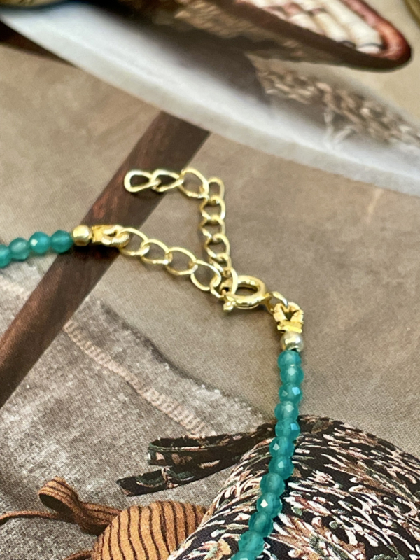 Maak je outfit compleet met deze handgemaakte kralen armband van fijne 2 milimeter edelsteentjes afgewerkt met gold vermeil kraaltjes, sluiting en verlengketting.