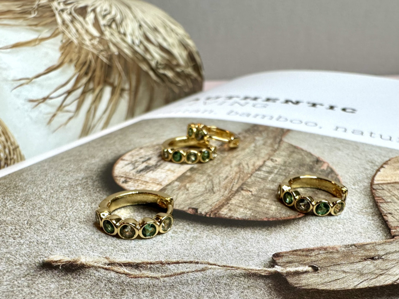Green Zircon Hoop - Gold Plated