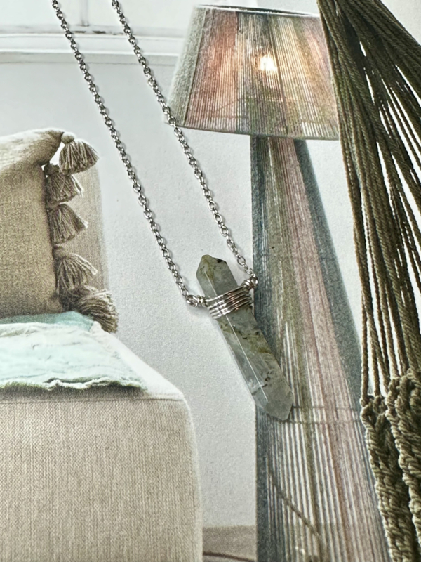 Sterling Zilver Ketting met wirewrapped labradoriet 'crystal point' hanger.