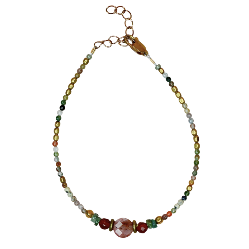 De Sunset Earth Bracelet straalt warme aardetinten en natuurlijke elegantie uit. Dit verfijnde armbandje combineert subtiele goudkleurige details met een speelse mix van natuurlijke edelstenen.Centraal…€ 21,50
